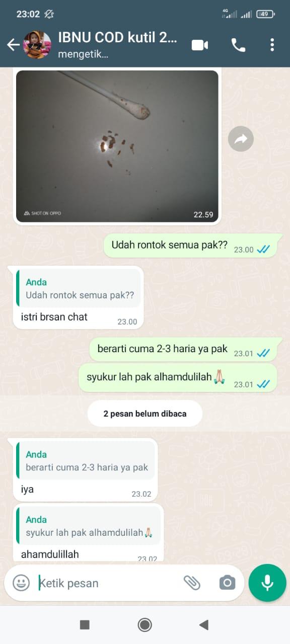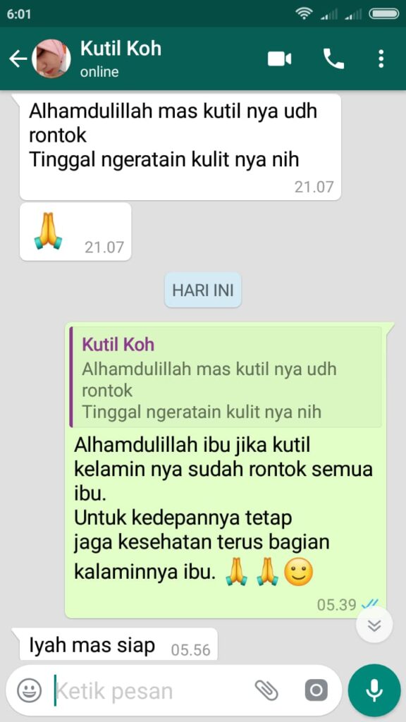 "Saya udah coba paket obat Bharata, alhamdulillah kutilnya rontok satu-satu. Rasanya lega banget, sekarang lebih nyaman."