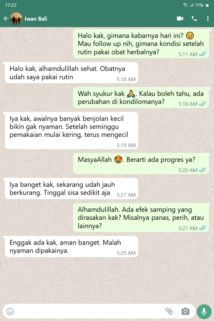 "Awalnya minder karena kutil kelamin, tapi setelah pakai obat ini cepat hilang tanpa operasi."